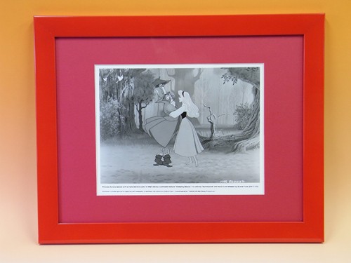 ディズニー映画の不朽の名作、「眠れる森の美女」の白黒スチール写真をポップな額装で、素敵なインテリアに仕上げました。