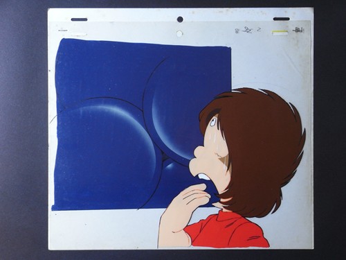 東映動画制作、フジテレビ系列で(1978年9月~1981年4月)テレビアニメ化。テレビ版と映画版とでは、鉄郎の顔立ちが異なっている。今回のセルは、テレビ版のもの。